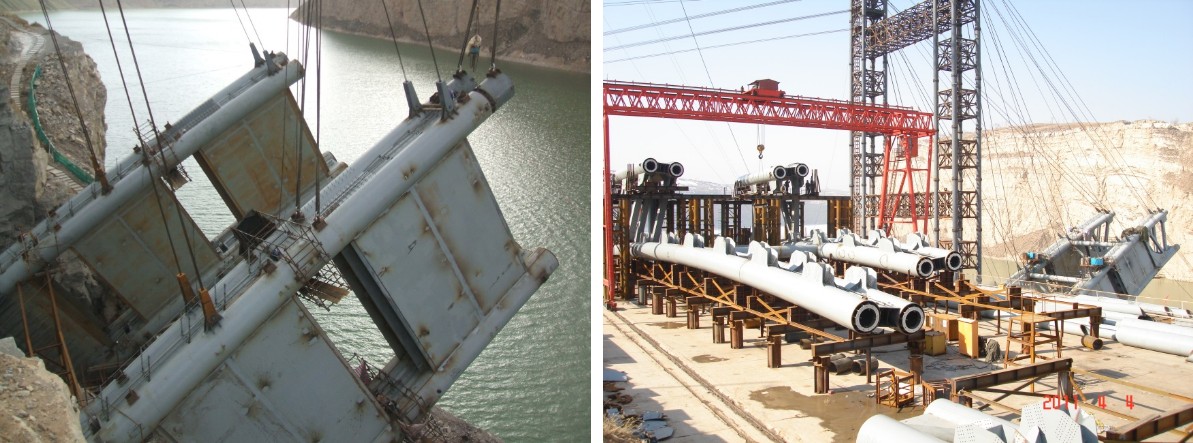山西準(zhǔn)朔黃河特大橋為上承式鋼管拱橋,主跨為360m的鋼管混凝土拱結(jié)構(gòu),工程量為9100噸。于2009月9月份開始施工,到2011年7月份完工。全橋采用橋?yàn)檎w節(jié)段拼裝、纜索吊吊裝的施工方案,克服了四管拱腳空間定位、整體節(jié)段懸拼精確定位、冬季施工等難點(diǎn)。