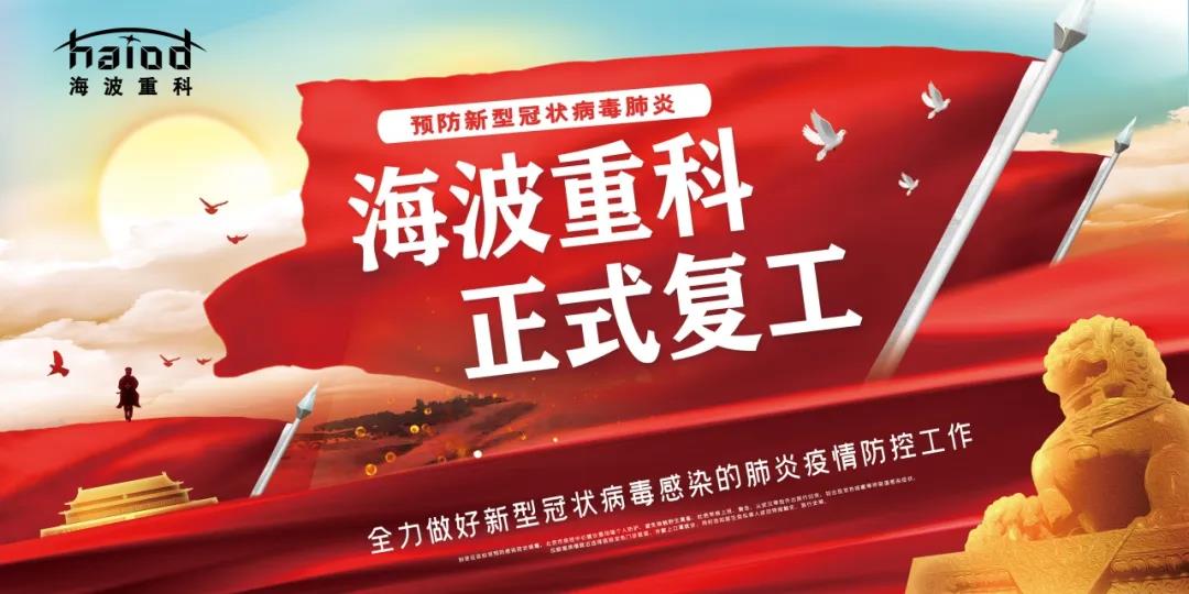 為全力應對復工復產準備工作,海波重科早在3月18日就企業(yè)復工復產問題積極響應,迅速行動,嚴格落實對我司人員管控、物資儲備、防疫防控、日常管理、宣傳教育等工作要求,堅持“疫情防控、復工復產兩手抓”的原則,聯防聯控,在積極做好疫情防控工作的同時,全面梳理復工存在的問題,深入分析復工期間的疫情防控形勢,迅速制定復工方案,采取強有力的后勤保障措施,切實做到安全第一、扎實推進,全面做好復工準備。