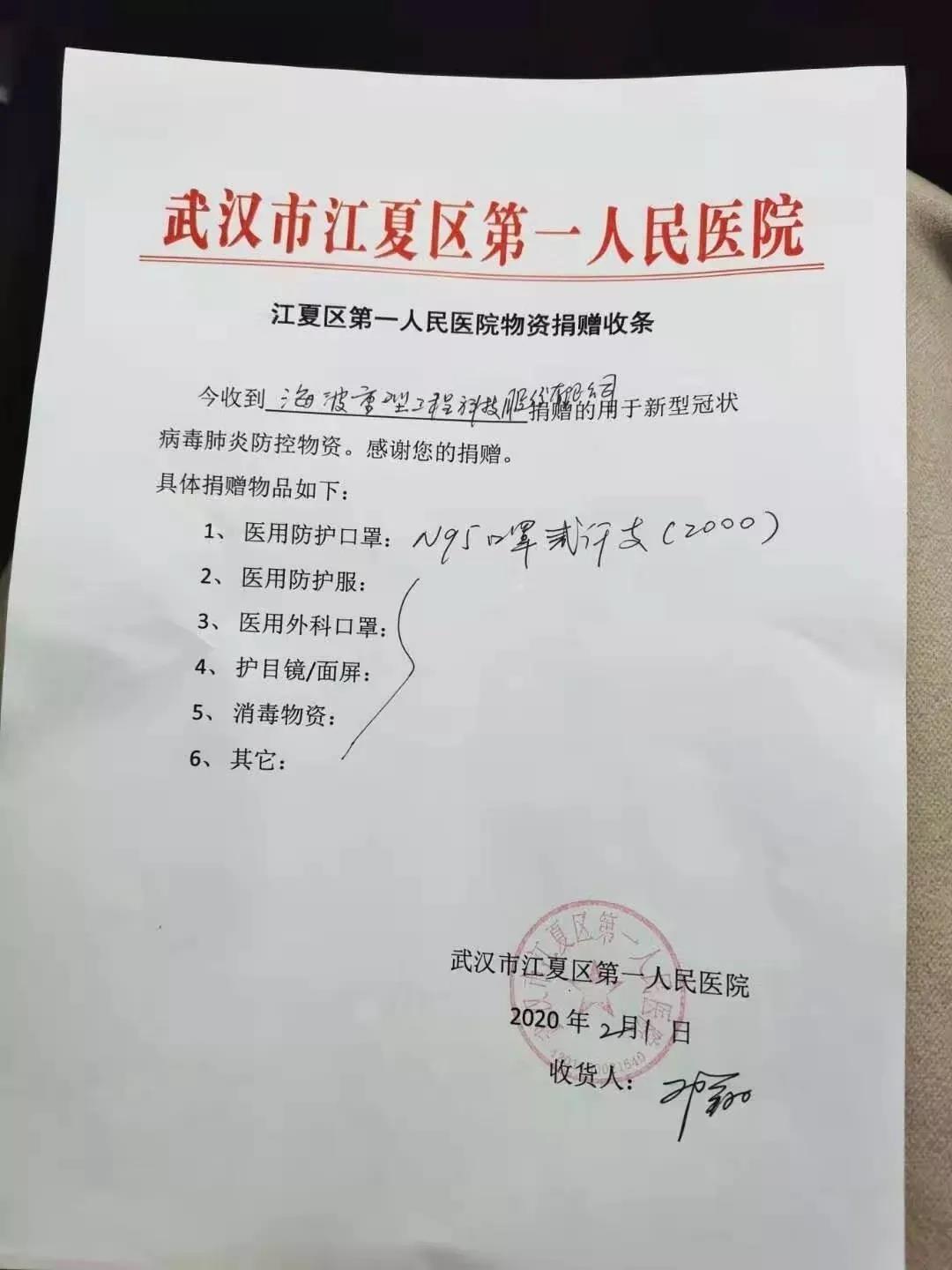 全國(guó)一盤(pán)棋,勠力齊戰(zhàn)“疫”。為支援新型冠狀病毒肺炎疫情防控工作,2020年02月01日,海波重型工程科技股份有限公司向武漢市江夏區(qū)、武漢市經(jīng)濟(jì)技術(shù)開(kāi)發(fā)區(qū)(漢南區(qū))相關(guān)部門(mén)共計(jì)捐贈(zèng)現(xiàn)金及物資210000元,其中N95口罩2000只,定向捐贈(zèng)給武漢市江夏區(qū)第一人民醫(yī)院,為抗擊新型冠狀病毒肺炎疫情貢獻(xiàn)綿薄之力。