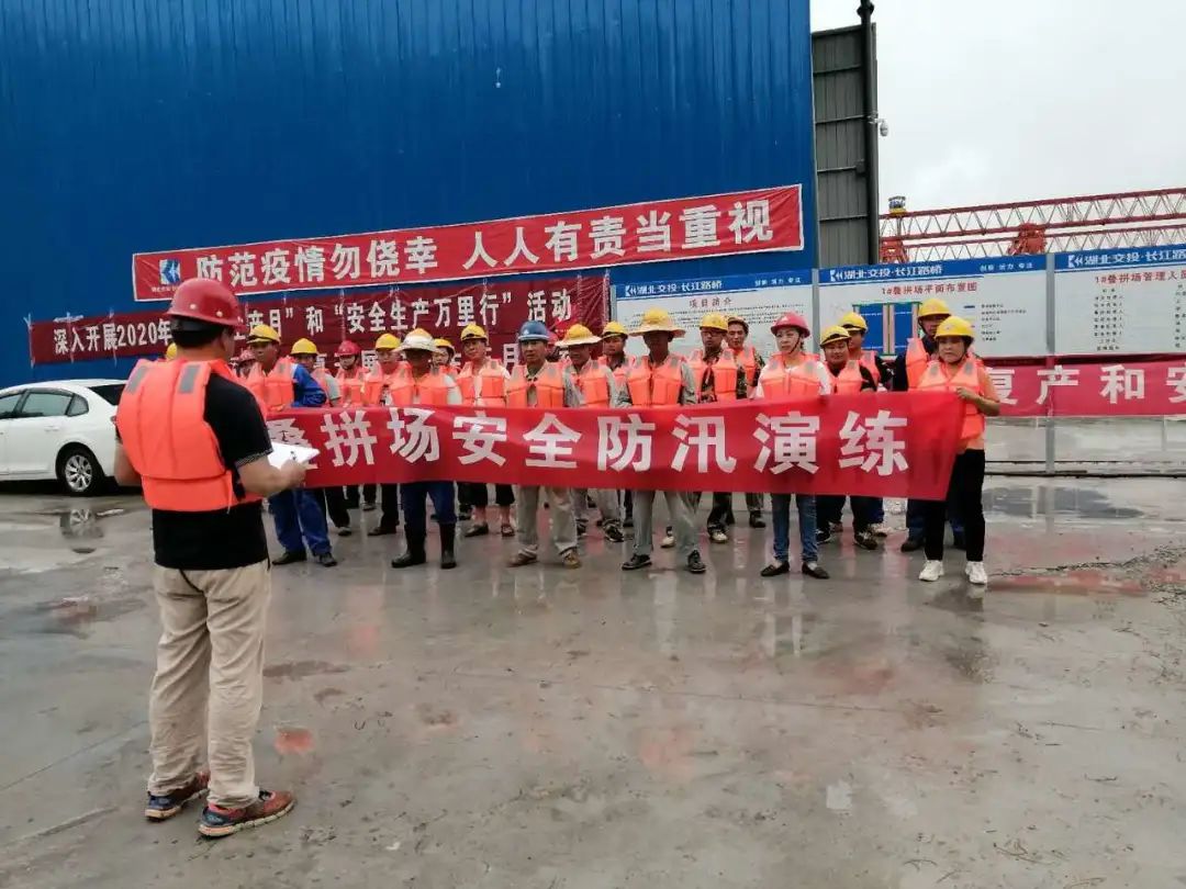 (海波重科新聞報道)2020年6月14日上午,根據(jù)上級有關部門對2020年“安全生產(chǎn)月”活動要求,本著對工程負責,對員工負責的態(tài)度,遵循“安全第一、預防為主、綜合治理”的安全生產(chǎn)方針,以“全面落實企業(yè)安全生產(chǎn)主體責任”為導向,以“消除安全隱患,筑牢安全防線”為主題,堅持事故災害應急與預防工作相結合的原則,針對湖北省江北高速公路東延線工程(疊拼場)內(nèi)施工環(huán)境和近期多雨的季節(jié)特點,我司組織了本次防汛防洪演練,參與演練共計22人。