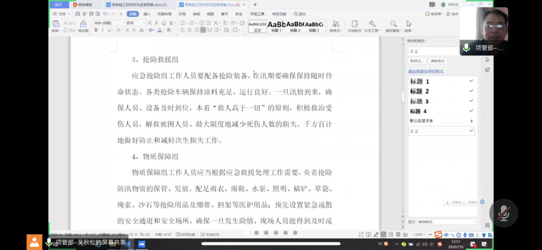 (海波重科新聞報道)2020年7月6日,根據(jù)人民日報客戶端最新消息,從湖北省防汛抗旱指揮部獲悉,目前長江防汛形勢不容樂觀,中小河流防汛壓力增大,湖庫防汛態(tài)勢趨緊,山洪災(zāi)害以及次生滑坡、泥石流等地質(zhì)災(zāi)害易發(fā)。目前全省已有535.45萬人次受災(zāi),直接經(jīng)濟(jì)損失53.26億元。海波重科江北項目部于今日12時緊急召開網(wǎng)絡(luò)線上防汛應(yīng)急預(yù)案會議,江北項目所有管理人員及各單位負(fù)責(zé)人出席會議。