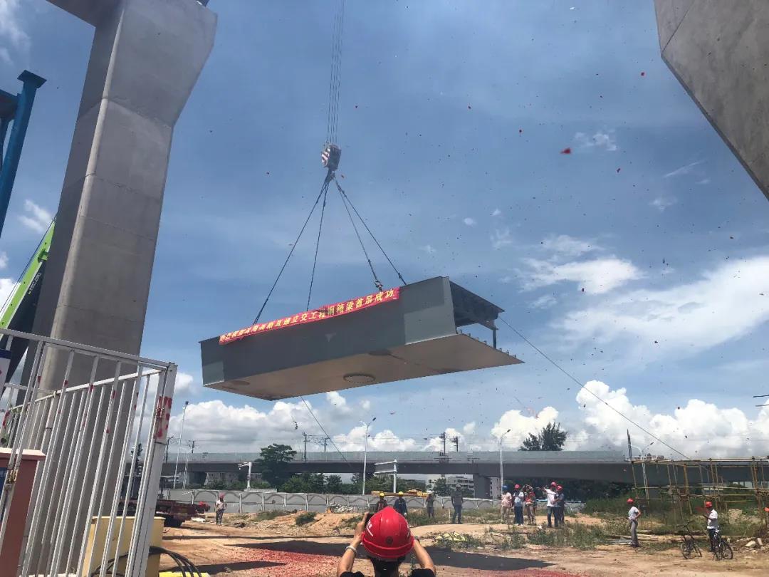 (海波重科新聞報(bào)道)2020年7月27日,由海波重科承建的珠海高新互通立交工程GXSG1標(biāo)順利完成鋼箱梁首吊任務(wù),標(biāo)志著珠海高新互通立交工程開啟了新的篇章。